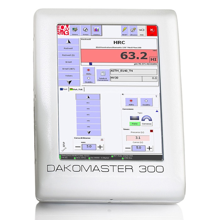 This software is user friendly in and easily managed by touchscreen. The software, developed by the AFFRI team, is a powerful analysis system, including fast test settings, statistics of results, live graphs and the ability to store data or test sessions.