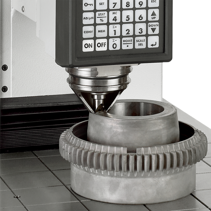 Automatic movement with automatic stop when contact is made with samples. Total of 700 mm of motorized vertical stroke. The approach of the head moving to the piece as opposed to the piece moving to the head allows for more accurate, stable and safe measurements.
