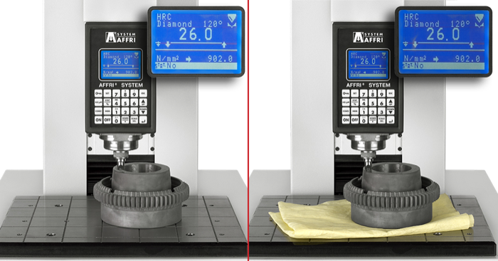 When testing unstable samples or deflecting parts, the AFFRI System will follow the sample without losing contact thanks to its 50 mm stroke for indenter and clamping hood. Easy and fast hardness measurements on pieces with different thicknesses without acting on tester head or elevating screw. |