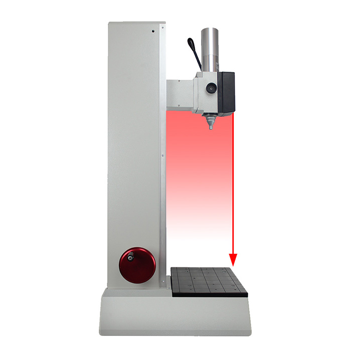 Total of 700 mm of vertical stroke. The moving tester's head permits easy measurements on large pieces, reaching points at the top of the sample that would be difficult to be measured with common testers. |
