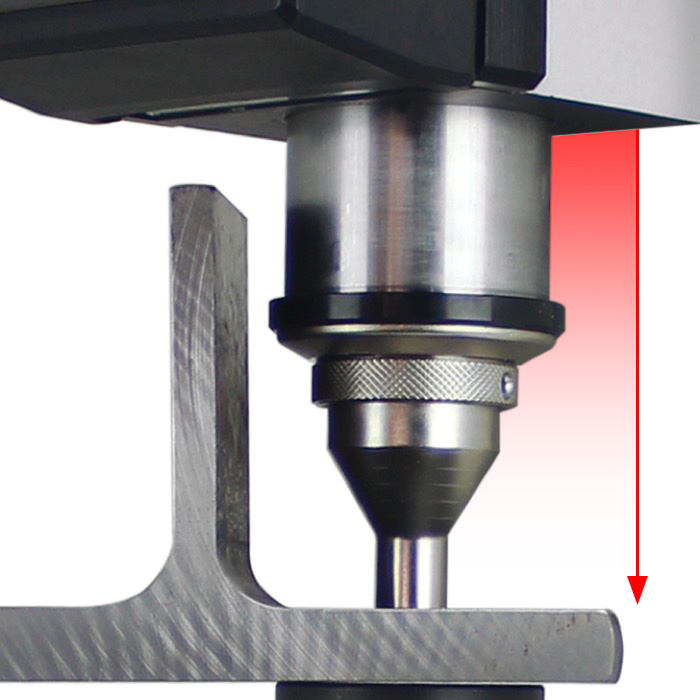 When testing unstable samples or deflecting parts, the AFFRI System will follow the sample without losing contact thanks to its 50 mm stroke for indenter and clamping hood. Easy and fast hardness measurements on pieces with different thicknesses without acting on tester head or elevating screw. |