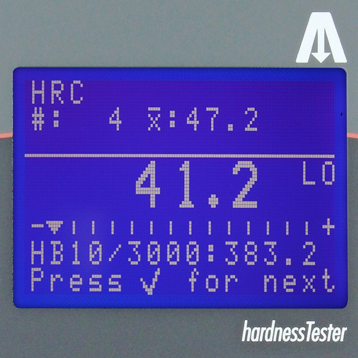 RSD: Rockwell: HRC - HRA - HRD - HRB - HRF - HRG - HRL - HRM - HRR Vickers (Only indentation): HV10 - HV100 Brinell: HB30 - HB10 - HB5 MPa (F/D2)