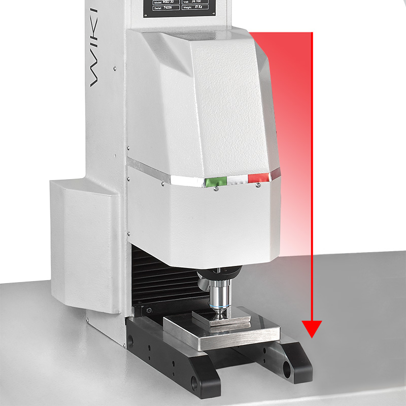 Just press one button and the head moves down, applies the force, makes the indentation, reads the indent and moves back upward. Fully motorized with 90 mm of vertical stroke.