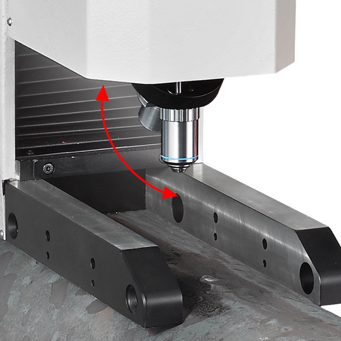 It is completely uninfluenced by direction so that it can operate up to 360° degrees of positioning, even upside down. Safe clamping on any surface, from round to flat, with self-allignment of the indenter with the measurement axis.