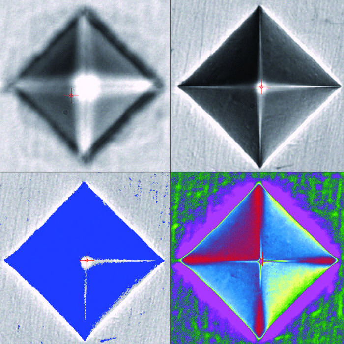 With software controlled focus, image cleaning, shading correction and DC regulated light source, reproducible results are obtained regardless of the number of indents measured. From perfectly polished to rough and etched samples, the auto-detection capabilities of WIKI JS allow measurements on a variety of sample surfaces. |